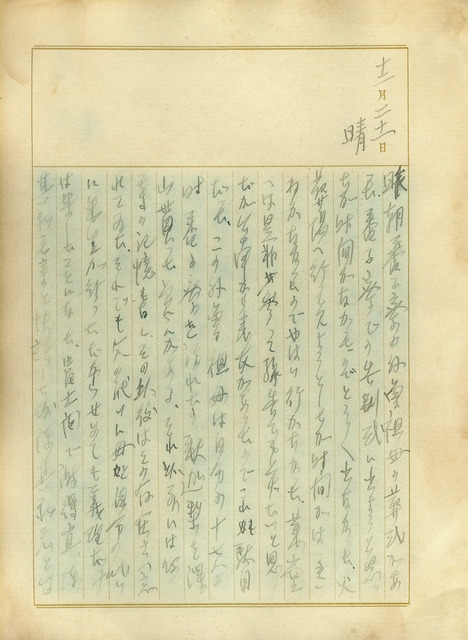 此為吳新榮於1940年12月21日撰寫的日記。日記前一日早上是吳新榮外曾祖母的告別式,然而因行程排滿而無法參加,僅讓女兒吳珠李代表出席。後來在富士閣與謝得宜、陳其和等長談結束後,與陳其和共赴臺南旁聽文藝演講會,郭水潭、徐清吉、黃庚申、楊萬壽也在。演講會之講者有久米正雄、中野實、吉川英治、火野葦平、菊池寬等,論述戰爭與文學的觀點,然吳新榮無法受演講會上發表之論點說服,後來在菊池寬演講途中便離開。   戰爭動員時期,除了人力、物力的統一管制以外,日本當局也將精神統制延伸進文壇中。當局編製教材宣導思想、扶植御用學者、對出版界施壓,好讓政治力量掌控言論思想,使作家在戰爭中能成為「筆部隊」替國家作戰。這樣的國策並不只在日本內地執行,臺灣作為殖民地亦同,上文中提及之「演講會」,正是日本當局介入文壇的方法之一。該巡迴演講不僅在日本內地舉辦,更在殖民地各地如台北、新竹、台中、台南等處演講,鼓吹透過文學完成大東亞戰爭。這樣的方針一直持續到了戰爭末期,期間臺灣的文藝團體受大幅整併,使文壇最終僅存屬於臺灣文學奉公會的機關雜誌《臺灣文藝》,以政治力量壓縮了臺灣作家們的生存空間,營造出日本當局所希望的文學動員。