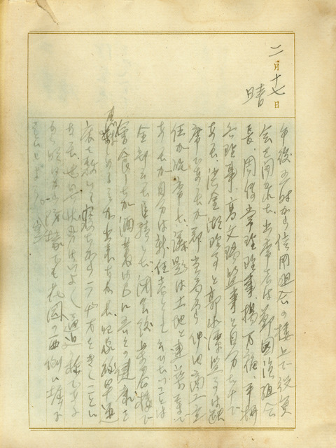 此係吳新榮寫於2月17日之日記。吳新榮當日出席蕭壠信用組合的會議,討論土地與建物等問題,會議結束後在樂春樓聚餐。   吳新榮自1941年1月26日的蕭壠信用組合總代表會被指派成為新任監事,近幾日都為組合之事忙碌,1941年2月14、15兩日去塭仔內、竹子港等地巡視組合的土地,並進行土地實地評價工作,當日則出席組合的役員會,主要討論土地與建物問題,可能與吳新榮前幾日去實地訪察之事有關。另據吳新榮在日記所述,他作為新任的監事,在會議中毫無保留的表達他想說的話,可見其對參與組織事務的野心與積極性。