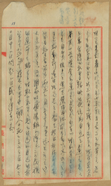 此係吳新榮寫於1941年7月27日之日記。吳新榮分析近日的國際局勢與戰況,包含日本的內閣改組、英美各國集結起來對抗日本等事情,並告訴返台的弟弟吳壽山局勢瞬息萬變,返回日本後需要多加保重。   關於日記中提到英美各國將集結起來對抗日本之事,應指二戰時期的ABCD包圍網戰略,其中以A(美國,America)、B(英國,Britain)、C(中國,China)、D(荷蘭,Dutch)代稱四個國家。ABCD包圍網係以英、美為主對日本進行經濟封鎖與貿易制裁的策略,因日本國內不產石油與鋼鐵,必須仰賴進口,英、美希望以此策略與日本進行談判,但在無法取得戰爭重要物資的情況下,反而刺激日本策動偷襲珍珠港的行動。