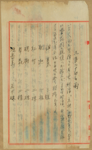 此係吳新榮寫於1941年9月24日之日記。時值立秋,吳新榮在花園裡換植株,晚上與子女們說明幼稚園的事情。   台灣的幼稚園教育事業起於日治時期,第一所幼稚園是1897年由蔡夢雄在今祀典武廟創辦的「關帝廟幼稚園」,但經營不滿3年即關閉。1900年出現以在台日人子弟為主的台北幼稚園,其後台灣各地陸續創辦幼稚園,據統計至1920年時台灣一共有18所私立幼稚園。日治時期幼稚園的教育制度最初以語言隔閡和風俗差異為由,採取日、台人分隔制,隨著教育制度與政府政策的轉變,逐漸變成日、台共學,在中日戰爭爆發之後皇民化教育更深入影響幼稚園的教育。   此時吳新榮的子女年紀尚幼,尚未上學。於1942年8月27日的日記提到他得知善行堂幼稚園招生情形,提到吳南圖尚未達到就讀年紀,但吳南河明(1943)年已達入學年齡,並打算找太田龍擔任吳南河的家庭教師進行學前教育,可見其十分關心子弟的教育問題。