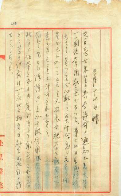 此係吳新榮寫於1942年3月14日之日記。吳新榮於該日收到長女吳朱里的小學校入學通知書;摯友陳清汗被任命為七股信用組合專務理事。   日治時期臺灣總督府依照當時的社會情況,依照不同族群而分別設有日本人讀的小學校、臺灣人讀的公學校,以及原住民讀的蕃人公學校與蕃童教育所等初等教育機構,適用不同的法令、不同教科書、教授不同的科目。臺灣人能就讀小學校之比例相當稀少,除島內上層社會、國語家庭、改日式名者之子女,較能進入小學校外,吳新榮既無改姓名,亦非國語家庭。然而,其於日記中表示,長朱里兩歲之長子南星早已入學小學校,加上與校長及郡下的視學(督學)關係甚好之故,才能讓自己小孩進入以日籍學童為主的小學校就讀。