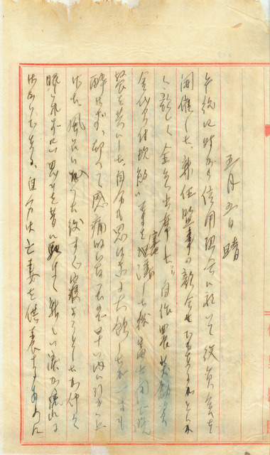 此係吳新榮寫於1942年5月5日之日記。吳新榮記述今日下午於新用組合舉辦有關新監事的役員會,會後至富士閣享用晚餐;翻到皮箱內過去寫給亡妻的信,加上遲遲無法入睡,想起過往與毛雪的種種,而欲撰寫〈逝去的春天日記〉及〈回憶〉兩篇文章,分別投稿至《臺灣文學》的秋季號與冬季號;明天有小孩南星、朱里的母姊會,請甘紅黨夫人代為出席。   今日為吳新榮喪偶一個多月以來,首次於日記上記載前往酒樓「飲盡千杯而不醉」之事。此外,在戰爭時期,所有人力、資源都必須投入戰爭,替天皇效力的背景下,言論、原料等等皆受到嚴格的控管。然而,文化出版反倒於1940年代,在「有限的空間」內展現出蓬勃又可觀的生命力,包含《民俗臺灣》、《文藝臺灣》、《臺灣文學》等等,保留著堅韌的草根與抵抗的精神。《臺灣文學》為1941年5月由吳新榮文學同好張文環主導創辦,為《臺灣文藝》與《臺灣新文學》於1936-1937年相繼停刊後,以臺灣籍文學作家居多之文學雜誌,相較於以西川滿等日人為主的《文藝臺灣》。1944年5月,由臺灣文學奉公會刊行、整併為《臺灣文藝》。