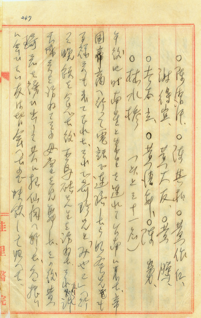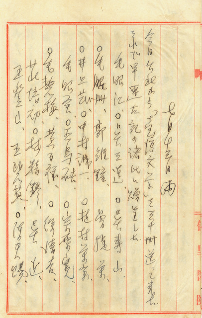 此係吳新榮寫於1942年7月13日之日記。今日收到自臺北寄來的《臺灣文學》30冊,分送給友人們。下午帶南星、朱里到臺南帝國商事打電話聯絡將分送的友人;連續拜訪王烏硈、許天成,後邀久未見面的友人黃錡至招仙閣暢飲。   進入戰爭時期後,所有人力、資源都必須投入戰爭的準備。替天皇效力的背景下,言論受到嚴格的控管。然而,文化出版反倒於1940年代,在被限縮的狀態下,展現出蓬勃的生命力,包含《民俗臺灣》、《文藝臺灣》、《臺灣文學》等等,保留著知識份子透過文字的書寫所展現出的草根與抵抗的精神。《臺灣文學》為1941年5月由吳新榮的文學同好張文環主導創辦,主要以臺灣籍文學作家的作品居多,相較於以西川滿等日人為主的《文藝臺灣》。1942年,由於吳新榮妻子的逝世,為紀念她而於《臺灣文學》上投稿〈亡妻記〉的兩篇文章,〈逝去的春天日記〉與〈回憶〉。