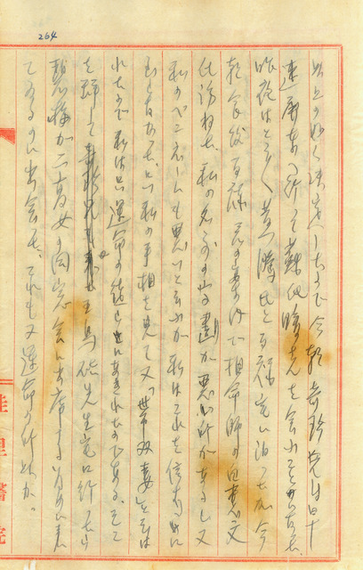 此係吳新榮寫於1942年8月2日之日記。昨晚,黃奇珍打電話請吳新榮前往臺南商談續弦之事。與黃騰、黃百祿等五人至「鶯料理」吃晚餐,後到招仙閣二次會;回黃百祿家討論吳新榮續弦之計劃,並且開始行動;今天早上黃百祿帶吳新榮會見算命師白惠文,指吳新榮帶有雙妻命;回到王烏硈宅後,巧遇來參加臺南二高女同窗會的毛碧梅;繼本月13日,再次收到12冊本期的《臺灣文學》,將贈與友人。   關於吳新榮續弦亡妻胞妹毛碧梅一事,從該年度的日記中,可看出於4月30日即開始規劃透過身旁友人來探聽六甲親家對於續弦的看法,6月12日更將各友人負責聯繫的對口,清楚的畫出。今日則是確定計劃並於隔日開始連絡各關係人。另外,再次提到不論市招仙閣的女侍還是小時候算命所言,甚至今日算命師亦都提到吳新榮有「雙妻命」。或許,妻子毛雪的急逝,短期間內使吳新榮頓失「女主內」的依靠,回歸現實面與生而為人的慾望,在家庭人口眾多、外務又繁雜的狀況下,吳新榮也於前幾日日繼中提到,若無法同意再娶,也希望亡妻能原諒。