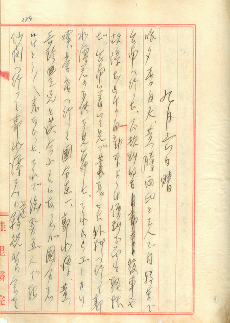 此係吳新榮寫於1942年9月6日之日記。昨日傍晚,吳新榮與李自尺、黃騰三人騎腳踏車至臺南探望郭水潭小孩的病;而後至尤加利茶座、招仙閣與松竹咖啡屋進行二次、三次會;而後於臺南新町一帶散步,投宿黃奇珍家中,隔日清晨返回佳里。   臺南新町約位於今日友愛街以南、海安路以西、永華路以北的街廓內,為日治時期臺南地區主要的「遊廓」(風化區)地區,分別有日本人、臺灣人及朝鮮人所開的貸座敷(妓院之意),其源自1922年時,臺南州廳將臺南市內的妓院集中於新町、以便管理。相較於通常有女侍陪酒,賣藝不賣身的料亭、旗亭或酒樓,是提供宴會餐飲之所與多元的娛樂性服務。如吳新榮即時常流連於臺南、佳里地區的酒樓間進行二次或三次會,為仕紳階層、地方人士的重要公共聚會、意見交流的空間。
