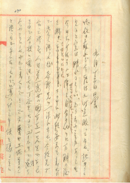 此係吳新榮寫於1942年9月13日之日記。今日吳新榮約謝朝安、國分直一等人於尤加利見面,討論藝文與風土民俗,而後至鶯料理享用午餐;與黃奇珍至吳新榮於臺南商專時代寄宿於同窗黃錡家的房間回憶過往;再與黃奇珍搭火車至斗南,轉乘轎車至虎尾,前往吳興旺家中追悼其父親;晚間前往虎尾的酒樓晃晃,遇到曾住佳里的母女,留宿該母女家中。   大日本製糖株式會社於1906年在虎尾地區的五間厝庄設立新式製糖工場(日治時期以「場」字書寫),帶入大量日籍人士進入、連動當地發展、提供就業機會。且,伴隨工場的設立,附近市街亦採用棋盤狀的街道,已有如同都市計畫般的規劃。1920年行政區劃改正,將五間厝庄改名為虎尾庄。1933年升格為虎尾街,人口已逾兩萬。進入戰爭時期後,因新式製糖工場所生產的酒精能做為飛機能源的替代原料,再加上虎尾地區於1936年建有虎尾海軍飛行場,而再1944年10月成為美軍轟炸的目標。