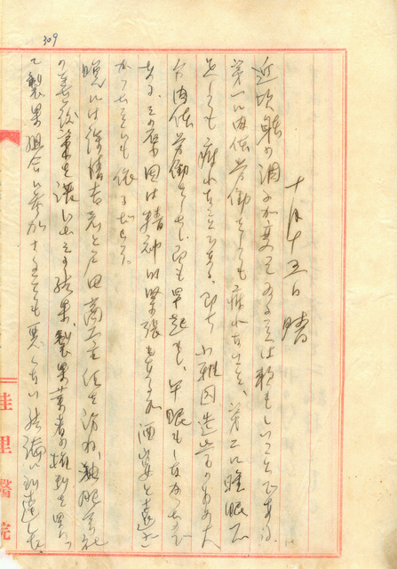 此係吳新榮寫於1942年10月15日之日記。吳新榮決的或許是因遠離酒席之故,即使自己的身體勞動後或睡眠不足,也不會感到疲勞、精神不濟;今晚與徐清吉和戶田素一討論佳里油肥會社的善後,欲購得製菓業者的權利。   佳里油肥工業株式會社係由1930年代與吳新榮、郭水潭共組「佳里青風會」的友人徐清吉於1942年創立,總部設立於佳里,主要為油類肥料的製造及買賣,出資者多為吳新榮等鹽分地帶之文學同好。然而,進入戰實體制後,日人欲在臺灣成立一個大型國策性的製油會社、管控原料端。因此,徐清吉的佳里油肥工業株式會社在同年年初時,即有表示難以經營,而在今日的討論中,欲轉向製菓業發展。