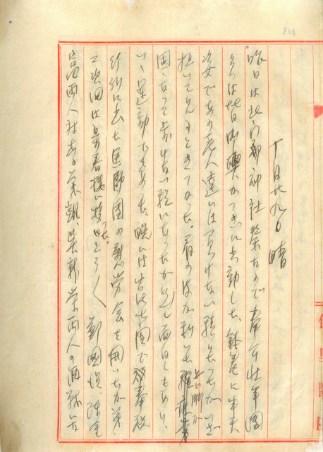 此係吳新榮寫於1942年10月29日之日記。昨日,《臺灣文學》冬季號以寄來,將〈亡妻記〉獻於毛雪靈前;同時,昨日亦為北門神社社祭,由奉公壯年團成員來進行抬轎;晚上在富士閣舉辦慰勞會,由吳新榮招待參加奉祝遊行的奉公醫師團成員,二次會移至樂春樓舉辦;幾日前保險會社的社醫診療後,認為吳新榮飲酒過量,導致血壓過高;今日下午出席佳里街的奉公會會議。   1932年吳新榮與毛雪結為連理,育三男二女。1942年3月27日毛雪不幸因病急逝。吳新榮因而為她寫下膾炙人口的〈亡妻記-逝去的春天日記〉與〈亡妻記-回憶〉,分別投稿於1942年7月11日與10月19日出刊的《臺灣文學》3、4號上。雖從吳新榮過去的日記中可得知,其對於女性、妻子的看法偏向大男人主義,或許毛雪的驟逝,家中事務需由吳新榮一肩擔起,感念妻子生前為家庭的奉獻,讓吳新榮在外無須擔心「後顧之憂」。   此外,日記中提及的奉公壯年團、奉公醫師團、佳里街奉公團皆為日本進入戰爭階段、推展皇民化時期的產物,吳新榮皆有參與其中。奉公會源自於1941年4月由臺灣總督府成立的皇民奉公會,以其作為核心,在地方組織部分,從各州廳、郡、市、街庄建立起包括支部、支會、分會、區會、部落會、奉公班等嚴密組織,動員幾乎全臺百姓、滲透到每個家庭、個人,為戰爭時期的「總力戰」進行準備。尚且,奉公會的外圍組織,會以性別、職業別、種族等分類,進行隊伍的編組,如奉公壯年團與奉公醫師團等等。臺灣總督府官方透過與臺籍人士的地方菁英或領導階層交好、納為奉公會之幹部,藉以做為看板、影響其他階層的廣大群眾,表達對國家的效忠。