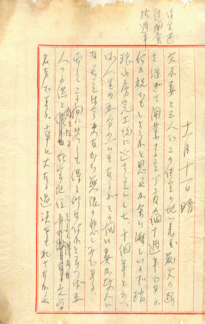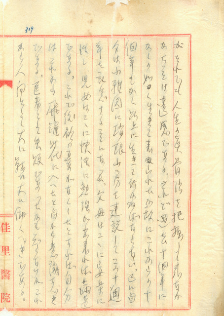 此係吳新榮寫於1942年11月11日之日記。今日為吳新榮接手後,佳里醫院開業的十周年紀念日,等小雅園北側的琑琅山房完工後,再一同慶祝;吳新榮表示,雖痛失愛妻,但在社會地位、文壇上也算有小有聲譽,該要進入「飛躍時代」而更加奮鬥。   吳新榮於1932年自東京醫學專門學校畢業後,同年9月返台,11月與毛雪結為連理。婚後繼承叔父吳丙丁於佳里所開設之佳里醫院,並著手進行醫院的擴建、設施之重整與宣傳。在原先佳里醫院西側、善行堂南側的病房改為以父親之號命名的花園「小雅園」,於1933年10月中旬完工,其中庭園的道路以南星、南河、南圖,三位兒子的姓名做為道路命名,建有一八角涼亭。1942年為紀念亡妻毛雪,將小雅園的病房改做為「琑琅山房」,著名的〈亡妻記〉亦是在此空間內所撰寫,同時也是聚集臺南地區藝文界人士的重要場所。