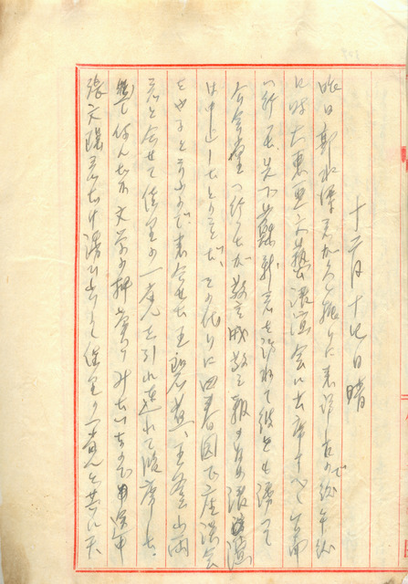 此係吳新榮寫於1942年12月14日之日記。昨日,吳新榮原與郭水潭及蘇新前往佳里公會堂參加大東亞文藝演講會,然而因空襲警報之故,而改至四春園座談;中途與友人們至天樂茶莊談天,張文環表示許多讀者對〈亡妻記〉讚譽有加、回響甚廣;晚間與郭水潭投宿於臺南近江旅社。   1942年3月27日,吳新榮妻子毛雪不幸因病急逝,因而為她寫下膾炙人口的〈亡妻記〉,分別有〈亡妻記-逝去的春天日記〉與〈亡妻記-回憶〉兩篇,投稿於1942年7月11日與10月19日出刊的《臺灣文學》3、4號上。雖然從吳新榮過去的日記中可得知,其對於女性、妻子的看法偏向大男人主義,或許毛雪的驟逝,家中事務需由吳新榮一肩擔起,感念妻子生前為家庭的奉獻,讓吳新榮在外無須擔心「後顧之憂」。文中因而充滿對於愛妻無盡的思念,並透過文字反省自身,並透過友人張文環主導的《臺灣文學》刊出,得到除文學界外,熱烈的讀者回響。   此外,日記中提到的「臺南陸軍病院」,原為「日本陸軍臺南衛戍病院」,1897年設立於赤崁樓,1917年重建於日軍步兵第二聯隊(今成功大學光復校區)之北側,並於1937年更名為臺南陸軍病院。戰後,由國民政府軍接收,於1948年在此成立陸軍訓練司令部軍醫院,之後又歷經數次更名、改制,於1960年因應陸軍總部統一各醫院番號,更名為「陸軍第804總醫院」,俗稱804醫院,最後於2000年改為國立成功大學用地。