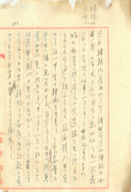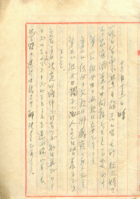 此係吳新榮寫於1942年12月15日之日記。前天,黃百祿將林嬌的家庭背景向吳新榮報告;昨日至將軍視察大道公塭的工程進度,魚塭八甲、耕地一甲,約已完成九成進度;今日琑琅山房落成,小雅園的改建已告一段落;最後吳新榮提到望能早日續弦,以減輕家庭上的負擔。   吳新榮於1932年自東京醫學專門學校畢業後返臺,透過王烏硈介紹認識妻子毛雪。婚後,同年11月繼承叔父吳丙丁於佳里所開設之佳里醫院,並著手進行醫院的擴建、設施之重整與宣傳。在原先佳里醫院西側病房改為以父親吳萱草之號「雅園」命名之花園「小雅園」,其中庭園的道路皆以南星、南河、南圖,三位兒子的姓名做為道路命名,於1933年10月中旬完工。1942年為紀念亡妻毛雪,將原先小雅園北側的病房改做為「琑琅山房」,取自於西拉雅族「蕭壠」之諧音,著名的〈亡妻記〉即是在此空間內所撰寫。另外,同年10月14日,吳新榮以家中祖父時代留下的花紋樟,委請黃秋錦雕刻小雅園的匾額,於19日完成,掛於「琑琅山房」門廳上。