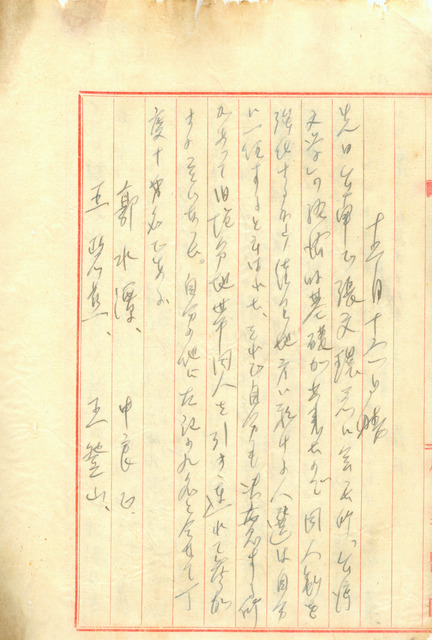 此係吳新榮寫於1942年12月16日之日記。前幾日於臺南與張文環會面時,提到《臺灣文學》佳里地方的負責人由吳新榮擔任,並帶動鹽分地帶文學同好一同參與;今日除讀完服部純雄著的《赤尾善治郎傳》外,弟弟吳壽山(或作吳國山)亦捎來東京對於《臺灣文學》與《民俗臺灣》得到好評價的消息。   日記中提到的吳壽山為吳新榮三弟,畢業於日本明治大學經濟系,1943年春季乘船返臺途中,受美國潛水艇襲擊遇難,為第二次世界大戰期間,吳新榮家族中唯一的犧牲者。1941年12月17日,日本偷襲珍珠港,為二次世界大戰的太平洋戰區拉開序幕。當時美軍為切斷日本海上的運補路線,在西太平洋與南中國海實施「潛艇封鎖作戰」,使得許多日本商船、客船因而成為美軍攻擊目標,而吳壽山即於此背景下遇難。   此外,日記中提到的服部純雄,為時任日本岡山地區金川中學校長,被吳新榮視為「恩師」,而從吳新榮日記中亦可窺見兩人友好關係,如常見其拜讀服部氏著作,如《富士》與本日提到的《赤尾善治郎傳》;彼此互贈藝文雜誌,如《臺灣文學》;1939年曾積極召集同窗為服部氏來臺舉辦歡迎會等。再者,1940年吳新榮為胞弟吳國卿爭取明治製糖原料委員一職之時,服部氏亦曾居中協助。