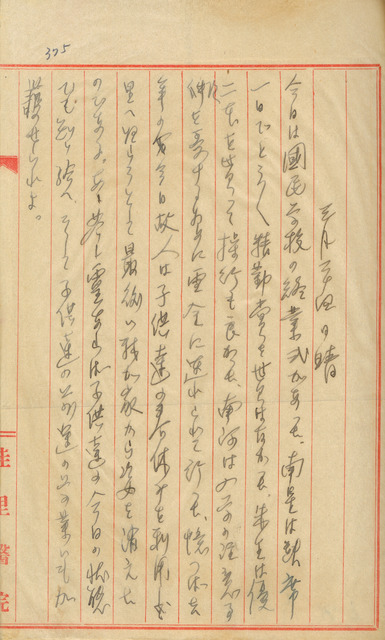此為吳新榮寫於1943年3月24日日記。本日是南星、朱里學校的結業式,雪金也帶著南河至學校聽新生入學注意事項。吳新榮思念起毛雪,去年此時帶著孩子們回娘家過春假的情景。傍晚吳天賞來訪,想與鹽份地帶文化人取得連繫,吳新榮則針對鹽份地方的文化傳統做說明。   吳新榮的孩子南星、朱里在今天的國民學校結業式後,就要放春假了,而過完春假次子南河也要進入國民學校就讀。毛雪出生在六甲的小觀園,每逢寒暑假或春假都會帶孩子們回六甲娘家小住。毛家是個大家族,南星兄弟姊妹們常在六甲與表親們玩到樂不思蜀,每每都要吳新榮一再催促才肯回到佳里。去年此時毛雪也帶著孩子們回六甲娘家,但卻遽然而世。此日,吳新榮看著孩子們日漸的成長,想到去年此時,內心不勝唏噓,希望毛雪在天上能庇佑孩子們學業進步。   1942年2月《台灣新民報》被迫響應國策更名為《興南新聞》,吳天賞是《興南新聞》文化部的編輯。吳新榮曾經在1935年7月間,於《台灣新聞》的文藝欄寫了一篇〈致吳天賞〉的文章,對吳天賞的文學鑑賞力有犀利的批判與揶揄,即便如此,兩人仍有所聯絡與交誼。今日吳天賞來訪,吳新榮一如往常在琑琅山房設宴款待,並找來林精鏐、王碧蕉、王登山等人同聚。吳新榮向吳天賞說明本地的傳統文化中心就在北門嶼及佳里興,漢學末期在北門嶼有王大俊、吳萱草、佳里興有林泮,到了新文學運動後期,在北門嶼則有王碧蕉、王登山、吳新榮等人,佳里興則有郭水潭、莊培初、林精鏐等人。今日與會的林精鏐等三人就是分別來自佳里興及北門嶼的文人。