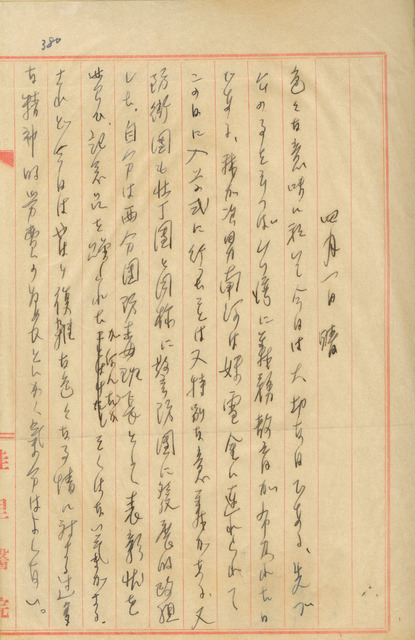 此為吳新榮寫於1943年4月1日日記。台灣今天公佈實施義務教育,吳新榮感到特別有意義,因為他的次子南河也在今天入學。同一天防衛團及壯丁團也在本日改組為警防團,吳新榮身為西分團防毒班長而得到表揚。   關於日治時期義務教育的實施,早在1919年文官總督田健治郎上任後,將教育改革列為重要的施政方針後,即在1921年台灣總督府評會第一回會議上引發熱烈的討論,而成為輿論的焦點。對於義務教育的施行,不論日人或台人莫不表示贊成,綜括討論的內容則各有其想法,日人評議員認為義務教育是總督田健治郎主張的「內地延長主義」的必要手段,是有效同化台灣人具有「國民精神」的必要措施。台灣人評議員則認為義務教育是現代社會的必要措施,不僅要求立即實施,並要求取消差別待遇,徹底改革台灣的教育制度,使台灣人與日本人享有同等的受教權。之後,總督府開始進行實施義務教育的準備,直至1943年4月1日正式公佈實施六年義務教育,即吳新榮在日記中所提到的,而且今天他的二兒子南河也參加了改為新制後學校的入學典禮,而覺得很有意義。4月1日除了在教育方面有所改制外,在防空方面,防衛團和壯丁團也正式改組為警防團。這些變革,都是日本為了因應戰爭的局勢所做的改變。