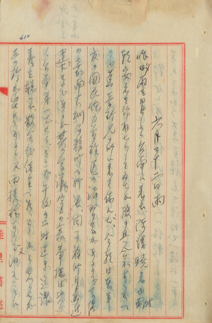 本篇為吳新榮寫於1943年06月22日日記,吳新榮參加國民體力管理醫師講習會,散會後到歷史博物館參觀以及至南方服裝研究所面見邱凰玉所長,傍晚即參與各友人的聚會。 日本於1940年公布〈國民體力法〉後,同年開始施行國民體力檢查,而台灣因施行時間與受檢對象具有不確定因素且多次異動,所以要到1943年1月31日臺灣總督府公告〈國民體力法施行規則〉後,才全面實施。當時國民體力檢查主要針對17至20歲的男性,主要檢查項目有身高、體重、視力、聽力等,此外亦有運動能力和疾病篩檢,如花柳病、肺結核等,總督府也會定期舉行國民體力管理相關的醫師講習會,如本篇日記中提及之年度國民體力管理醫師講習會,吳新榮亦參與其中。吳新榮於博物館參觀時,內有林則徐印,並認為博物館陳設的相當完備,甚是高興,還遇到石暘睢。石暘睢,台南人,為台灣文獻界權威,曾擔任台南市歷史館館長,時常與吳新榮一起採訪台南縣市之歷史文物。近期日記顯示出,自從毛雪逝世後,吳新榮更常流連酒家與女侍應生之間,甚至東奔西跑,漫無目的毫無所得。