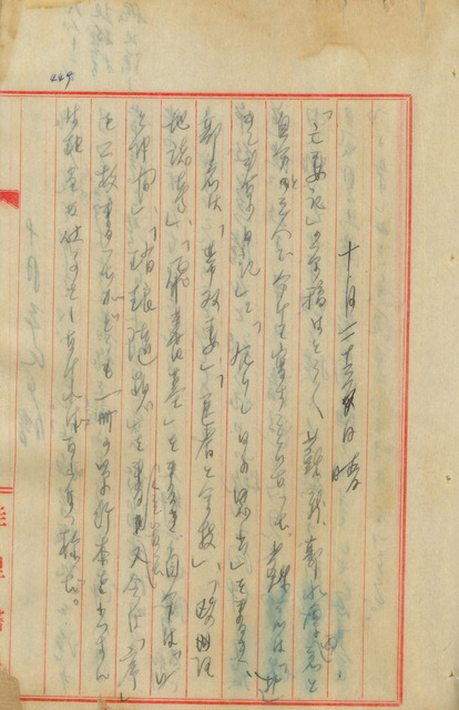 此係吳新榮寫於1943年10月23日日記,吳新榮與蘇新、郭水潭分別謄寫《亡妻記》。   1942年3月27日,吳新榮第一任妻子毛雪驟逝,他懷念毛雪而寫下《亡妻記》,這部作品膾炙人口,亦是台灣文學史上的經典。吳新榮於《臺灣文學》發表〈逝去的春天的日記〉(逝きし春の日記)和〈在世時的回憶〉(在りし日の思ひ出)後,清水書店、台灣文學社和中央書局皆曾向吳新榮聯絡出版一事。準備出版之同時,他請蘇新、郭水潭協助校閱和謄寫,以〈逝去的春天的日記〉〈逝きし春の日記〉、〈在世時的回憶〉〈在りし日の思ひ出〉為主,再增加幾篇隨筆:〈帶雙妻〉、〈醫生和餘技〉、〈漚汪地誌考〉、〈飛蕃墓〉、〈街與伙伴們〉、〈琑琅隨想〉,再加上〈序〉,成為《亡妻記》的主要架構,最後由清水書局出版。