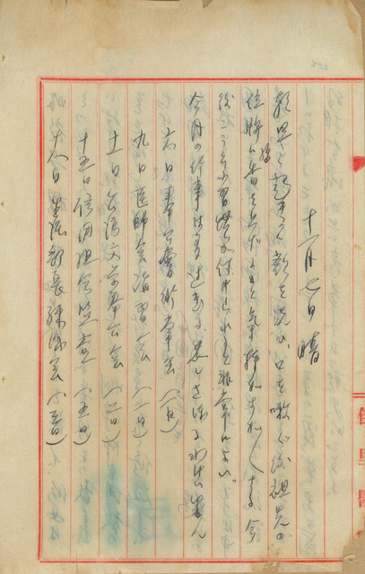 此係吳新榮寫於1943年11月7日日記,一早向祖先牌位上香;記述本月需參加台灣文學奉公會、醫師會講習會、生活部長錬成會等活動。   吳新榮在日記中提到11月要參加不少活動,這些活動多因應皇民化運動所組成,不過,醫師會是很早即成立的組織,即台南醫師會(1943年11月9日日記),成員有台、日人醫師。1937年,中日事件發生後,亦協助免費診療在鄉軍人活動。又,其中提到台灣文學奉公會,是成立於1943年4月,前身為皇民奉公會。台灣文學奉公會主要幹部組成有矢野峰人、西川滿、島田謹二、濱田隼雄、張文環等人,機關誌為《台灣文學》(共8期)。1943年11月10日,吳新榮和郭水潭搭夜車北上參加11月13日的台灣文學奉公會舉行的「台灣文學決戰文學會議」。