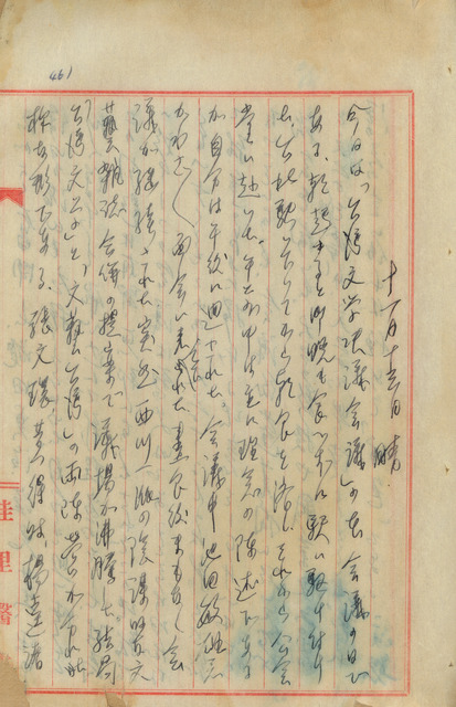 此係吳新榮寫於1943年11月13日日記,台灣文學決戰會議於今日正式召開,會議上,西川滿一派提出文藝雜誌合併案,會後在蓬萊閣開座談會。結束後,《台灣文學》同仁齊聚張文環家,有呂赫若、龍瑛宗、郭水潭、王白淵、王昶雄等十多人與會,會後搭車返家。   日記中提到的「決戰文學會議」即「台灣決戰文學會議」,1943年11月13日於台北公會堂召開,由台灣皇民奉公會主辦,台灣總督府情報課、皇民奉公會中央本部、日本文學報國會協辦。有西川滿、濱田隼雄、河野慶彥、龍瑛宗、張文環、楊逵、周金波、陳火泉等近60位文學者與會,著重台灣文學今後如何因應戰爭局勢的發展等議題。如同吳新榮在日記中提到,西川滿提出文藝雜誌合併一事,造成以西川滿為首的《文藝台灣》和張文環等台灣人為主的《台灣文學》兩社群的決裂,最終,兩雜誌相繼停刊,1944年5月,台灣文學奉公會發行《台灣文藝》。