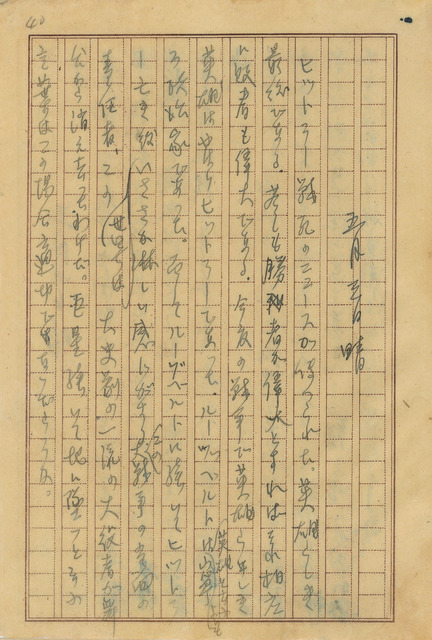 此係吳新榮寫於1945年5月3日之日記。吳新榮聽聞希特勒戰死的消息。