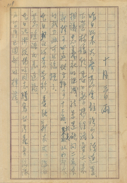 此係吳新榮寫於1945年10月3日之日記。前一日黃金龍等人來與吳新榮商議忠義社組織,最後決定設置顧問2名、本部幹事4名及地方幹事12名,總攬北門郡下的武力派。另有黃奇珍等人來訪,及吳新榮委託他人騰寫台灣義勇總隊及台灣區團部的標語。   以1945年8月15日為分界,此前吳新榮1945年的日記多籠罩在戰爭陰影之下,頻繁的空襲讓他感到身心俱疲,甚至自嘲自己已是躲空襲的老手;在8月15日當天中午由日本天皇透過廣播宣布投降,此後吳新榮的日記洋溢著戰爭結束的喜悅,甚至大聲宣告他的新生活將要開始,但他仍在日記中表露出對於當前不穩定的社會秩序和不明朗時局的擔憂,在日記中亦可見其頻繁的與友人聚會商討時局之紀錄。在警察機關無力維持秩序、謠言四起的情況下,吳新榮等在地仕紳及知識份子主動承攬責任,籌組如台灣義勇隊、三民主義青年團(三青團)等組織協助維持社會秩序,因此自9月以來吳新榮的生活重心多在籌備三青團等公共事務上,在日記中可見其為三青團四處奔走之紀錄,如商請韓石泉、莊孟侯等人協助或是舉辦籌備委員會等。   另本篇日記中提到忠義社,是吳新榮召集地方的流氓籌組的武裝防衛組織,因希望這些人可以對社會有正面的貢獻而將他們組織起來,激發其正義感進而守護鄉土,之後吳新榮將忠義社改為糾察隊,成為三青團的附屬組織,並改用民主方式選出隊長,繼續為地方服務。