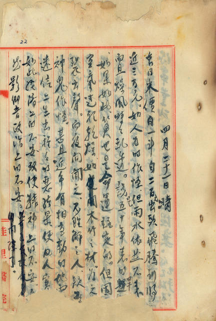 此為吳新榮記載於1946年4月21日日記,本日物價以脫韁野馬之姿向上攀升。吳新榮認為許多天災人禍不是迷信就是注定,但真正原因是經濟與政治的動盪,導致人心惶惶。   本日日記提到,物價上漲,在日治末期物價通膨,主要原因是戰爭末期的物價管制政策在日本宣告投降之際瓦解,物價從管制的水準上升到市場均衡水準。在戰後,因國共內戰越演越烈,需要台灣的物資之前往第一線支援,導致在台灣的人民糧食缺乏,民不聊生。吳新榮則感嘆,民間裡諸多的迷信與怪力亂神,最大的源頭來治經濟上的憂慮與政府的動盪。