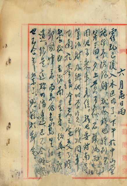 此為吳新榮1946年6月1日日記,因霍亂傳染進吳新榮家鄉佳里區,下午則在中山堂為人民注射疫苗。晚上,黃百祿與石錫純前來佳里。吳新榮為兒子吳南星注射疫苗前往台南。在與蔡清塗晚餐後拜訪鄭國津,留宿於鄭國津家中。   本日日記提到霍亂,為一種急性腹瀉疾病,染上主因通常為環境衛生與飲食習慣所導致。在日治時期台灣曾發生大規模流行,與瘧疾、天花、鼠疫、腸胃道感染,堪稱當時的四大醫療衛生問題,霍亂被列為法定傳染病之一。1920為天花與霍亂在日治時期最後一次大流行,之後都是零星發現。到了戰後初期,當時兩岸交通日益頻繁,加速傳染病流竄,加上原本在台擔任檢疫工作的日籍人員遣返後,港口檢疫工作停頓,出現防疫漏洞,包括霍亂、狂犬病、鼠疫等傳染病從中國地區再度入侵;根據統計,1946年台灣共有3809人罹患霍亂,2210人不幸喪命,死亡率高達58.02%,是第3次霍亂大流行。
