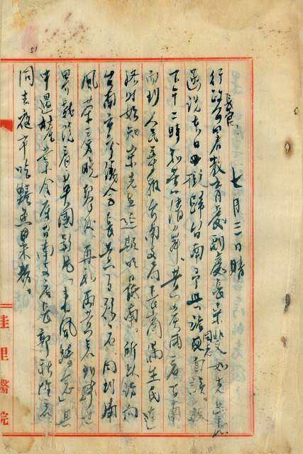 此為吳新榮1946年7月3日日記,行政長官公署教育處副處長宋斐如致信給吳新榮,內容大意想與吳新榮等人會談。下午,和黃清舞、黃炭兩君前往台南,拜訪《人民導報》臺南支局長商滿生,之後與好友黃百祿,前往世界館館賞影片。   日記中在吳新榮的日記中經常可見臺南世界館,而世界館為當時的戲院,與戎座、宮古座、大舞台並稱為台南四大戲院,吳新榮也常常進戲院觀賞表演。又,日記提及人民導報,創立於1946年1月1日,領導團隊為鄭明祿、王井泉、宋斐如、王添灯,1947年因批評國民黨政府以及報導二二八事件遭國民黨政府停刊,該刊物編輯與記者幾乎被逮捕。