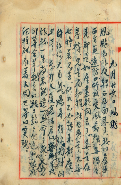 此為吳新榮1946年9月26日日記,今日颱風入境台灣,而吳新榮描述自家因颱風,房子外轟轟作響。妻子林榮樑在產房照顧孩子,無法安穩入睡的吳新榮起床靜坐,思考自身處境與權勢者的差距。   今日吳新榮在家中與家人度過,但因颱風肆虐,導致吳新榮無法好好休息,正在靜坐思考,掌權者與自身的處境為何相差甚鉅。又,日記提到所謂颱風,因台灣地理位置,長年受到颱風的影響,根據中央氣象局統計,以 8 月最多,次為 7 月和 9 月,因此每年之 7至 9 月可說是臺灣的颱風季,台灣平均一年颱風登入次數,大約為三到四次,而今日吳新榮日記記載的颱風,為1946年9月24日侵台的葵瑞達颱風。