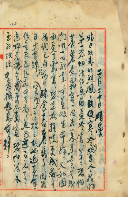 此係吳新榮寫於1947年2月20日日記。因昨日(2月19日)寒風凜冽,吳新榮擔憂養殖副業與當前主食番薯受影響,使糧荒問題加劇,同時亦提及米、魚價格過高,恐成為「政治危機」。   戰後初期,因當局厲行計畫經濟,再加上官場貪污舞弊、用人不當、公營企業經營不善等因素,促使臺灣通貨膨脹、物價飛漲。1945年終戰之時,一斗米約六十元,據吳新榮1947年1月31日記述,當時米價已破三百元,本日記述則已超過四百元,同時其亦於日記中常提及因糧食短缺,三餐多食番薯,以及當時尚有天花等疫情流行之事,可從中印證戰後初期臺灣動盪不安的社會情勢。又據1946年下半年起,美國駐臺北領事館給美國國務院的〈臺灣情勢報告〉中,亦提到中國政府的失政與臺灣民怨四起,並如同吳新榮於日記中對政情的擔憂,預言「短期內將發生暴動」,而於1947年2月底,臺灣確實即因臺北查緝私煙案,引發大規模的「二二八事件」,吳新榮與其父親吳萱草亦曾因此事件被捕。