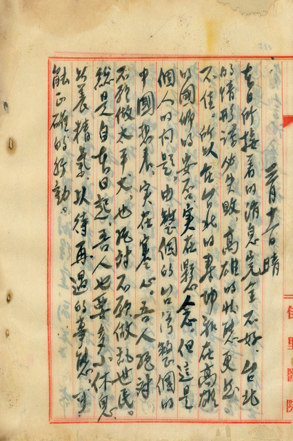 此係吳新榮寫於1947年3月11日日記。吳新榮本日接獲臺北與高雄兩地的情形不樂觀;下午又得知臺南市宣布戒嚴令,以及要求市民繳還兵器與清查戶口等,因此擔憂身處各地的兄弟與長子吳南星之安危;晚間與高文瑞等人訪問警察所長,探問地方情勢。   日記中提及的臺北、高雄與臺南情形,指1947年臺北二二八事件發生以來的社會窘況。其中高雄地區於該年3月3日開始騷動,時任高雄要塞司令部司令彭孟緝於3月6日擒拿高雄市二二八事件處理委員會(以下簡稱處委會)代表、派兵入市區屠殺處委會委員,以及掃蕩高雄火車站與第一中學,並於3月7日掌控高雄地區。至於臺北地區,則在3月9日因憲兵與國軍二十一師陸續抵臺,時任臺灣省行政長官兼臺灣省警備總司令部總司令陳儀宣布臺北市戒嚴,隔日又宣布全省戒嚴,亦即本日臺南市戒嚴脈絡,而又因抵臺軍隊於各地武力鎮壓,造成死傷慘重。從吳新榮1947年3月以來的日記,可窺見當時二二八事件於全臺蔓延情形、時局緊張氛圍,以及臺南地區處委會的發展。又自該年3月10日陳儀命令解散處委會後,許多處委會成員成為二二八事件受難者,如曾任臺南縣處委會總務組副組長的吳新榮亦曾被捕,而究整體二二八事件根本原因,與戰後初期的失政有關,如官場貪污舞弊、公營企業經營不善導致通貨膨脹、對臺灣人的歧視等。
