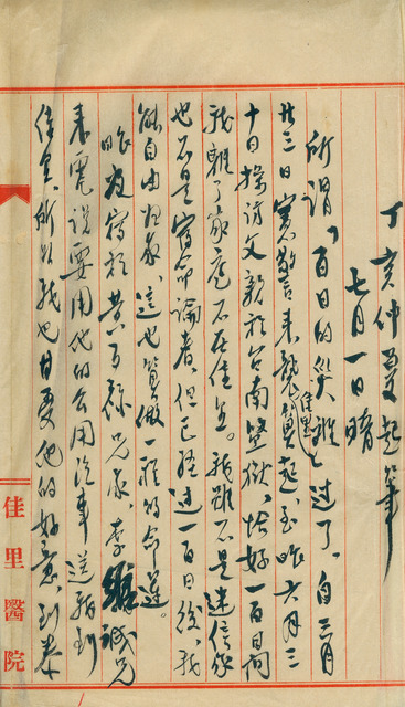 此係吳新榮寫於1947年7月1日日記。吳新榮將1947年3月23日憲警人員登門,至6月30日於臺南監獄探望父親吳萱草,共百日間,稱為「百日的災難」。昨夜(6月30日),吳新榮夜宿黃百祿家;本日由李維誠送其回佳里,途中經過泰德公司與三和公司;回佳里後,林碧郎、陳漢等友人來訪道賀;晚間,與繼室林榮樑等人,受黃騰招待。   由於戰後初期官場貪污舞弊、公營企業經營不善導致通貨膨脹,以及當局對臺灣人的歧視等失政,臺灣於1947年2月底引發大規模的二二八事件。同年3月期間,國民黨當局決定以軍事力量處理二二八事件,使臺灣社會一時風聲鶴唳。吳新榮亦因本日提及的憲警人員上門之事,於3月24日開始短暫逃亡避難,直至4月26日完成自新手續,但於5月2日又因友人呂榮輝曾加入共產黨之事遭關押與審判,直至6月21日在多位友人店保下獲釋。   此外,吳萱草於吳新榮逃亡之時,因收到新營區警察所長沈大成建議吳新榮可出面自新之信件,於4月9日在返回臺南將軍故里與親友商議途中,遭到逮捕,並被以涉入陳梧桐案為由,遭判刑入獄至今。吳新榮自6月21日出獄後,即積極求援解救其父,最終在多位親友協助下,吳萱草於9月9日獲釋。