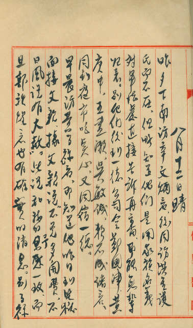 此係吳新榮寫於1947年8月12日日記。吳新榮昨日拜訪辛文炳,之後與辛氏欲拜訪翁金護,但翁氏不在家;至一德公司與鄭國津、黃庚申等人會晤,並一同於夜市吃點心;本日與黃百祿、郭秋煌、陳啟川等人會晤。此外,其亦分析解救其父吳萱草的三大方法,其一為等待傳聞於8月15日抗戰勝利紀念日之時的特赦;其二為以吳萱草年事已高為由,請陳啟川協助遊說;其三為以家族名義,請陳漢平向臺灣省警備總司令部軍法處提上訴,而若三者無效,只能請黃百祿依法上訴。   1947年,吳萱草與吳新榮父子皆因涉入二二八事件,先後被捕入獄,而吳新榮於同年6月底獲釋後,即積極求援解救其父。同時,在石錫純建議下,吳新榮積極尋求與時任臺灣全省警備司令彭孟緝關係密切的陳啟川協助。最終,透過黃百祿、郭秋煌與陳啟川斡旋兩、三回後,吳萱草於9月3日獲得彭孟緝的無罪批示,並於9月9日獲釋。   此外,吳新榮除密切與陳啟川交涉外,其亦各方尋求援助與建議,如本日欲透過已故元配毛雪二哥毛昭癸之妻舅辛文炳,與亦有因二二八事件被補並獲釋的辛氏岳父翁木之弟翁金護請益。又,翁金護為臺南望族翁螺次子,曾任二二八事件處理委員會臺南市分會委員兼救護組長,1947年3月與時任臺南市參議員的胞弟翁水元一同遭憲兵隊逮捕,除參與處委會外,亦被控「使用迫擊砲在新營發動暴動」、「提供經費企圖強接臺南鹽務公司」等多項罪名,後經家人多方奔走疏通,始獲釋出獄。