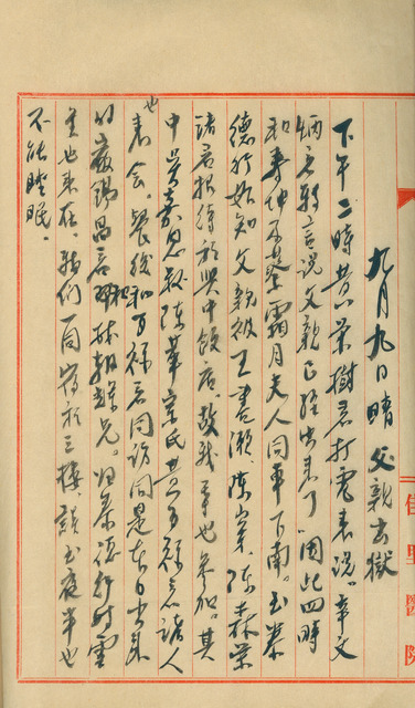 此係吳新榮寫於1947年9月9日日記。本日下午,吳新榮接獲父親吳萱草出獄消息;參與陳穿等人招待吳萱草之宴會,與會者尚有吳嘉思等人;與黃百祿一同拜訪林朝輝等人;晚間與胞妹吳雪金等人一同宿於泰德公司。   吳萱草因涉入二二八事件,於1947年4月被捕入獄。在石錫純建議下,吳新榮積極尋求與時任臺灣全省警備司令彭孟緝關係密切的陳啟川協助,並藉由黃百祿、郭秋煌與陳氏斡旋兩、三回後,使吳萱草於9月3日獲得彭孟緝無罪批示,並於本日獲釋。   此外,除密切與陳啟川交涉外,吳新榮亦各方尋求援助與建議,如曾透過本日提及的辛文炳(吳新榮已故元配毛雪二哥毛昭癸之妻舅),與亦有因二二八事件被補並獲釋的翁金護(辛文炳岳父翁木之弟)聯繫及請益。   再者,據《吳新榮回憶錄》一書記述,日記中提及的泰德公司,為黃百祿、鄭國津、賴石成、吳敏誠等人投資事業。於吳新榮入獄期間(1947年5月至6月),該公司友人幫忙接濟當時仍身在獄中的吳萱草良多,因此讓吳新榮十分感激。