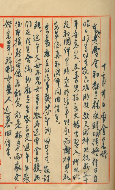 此係吳新榮寫於1947年11月30日日記。本日是吳新榮胞妹吳雪金與林永睦大喜之日。   日記中提及的吳雪金,為吳萱草次女與吳新榮二妹,畢業於臺南長榮女學校,曾就讀日本女子美術學校家政科,但因吳新榮元配毛雪逝世,未完成學業即返臺協助家務,返臺後曾任教職於佳里初中(今佳里國中)。1946年7月與林永睦訂婚,並於本日結婚。   吳新榮曾於1946年6月19日日記中提及,早先同意讓胞妹與林永睦交往,是因為林氏符合其提倡的三大條件:第一是門風,林氏為麻豆望族,亦是日治時期投身臺灣文化啟蒙與抗日活動的林銳之子;第二是學歷,林氏為吳新榮日本東京醫學專門學校(簡稱東京醫專)學弟,亦是吳新榮籌組的「東醫南瀛會」幹事;第三是體格,林氏樣貌魁偉,亦是游泳健將等。   從吳新榮1947年10月至11月日記中,常見其提及為吳雪金籌備婚禮之事。