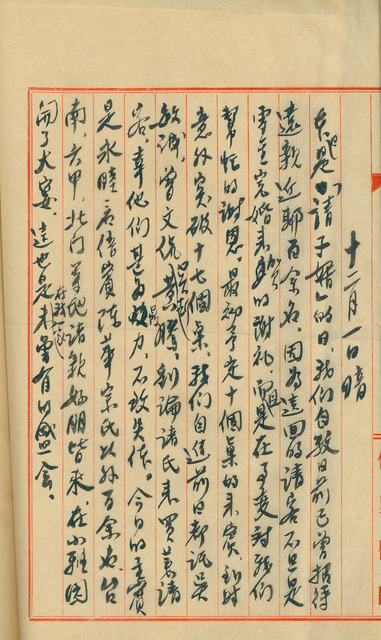 此係吳新榮寫於1947年12月1日日記。本日是吳新榮家族的「請子婿」(tshiánn kiánn-sài)日,除宴請主賓林永睦與前來祝賀吳雪金完婚之親友外,亦有藉此感謝親友於二二八事件中提供協助之意。   日記中提及的吳雪金,為吳萱草次女與吳新榮二妹,畢業於臺南長榮女學校,曾就讀日本女子美術學校家政科,但因吳新榮元配毛雪逝世,未完成學業即返臺協助家務,返臺後曾任教職於佳里初中(今佳里國中)。1946年7月與林永睦訂婚,並於1947年11月30日結婚。   本日是吳雪金歸寧之日,臺灣閩南語稱為「做客」(tsò-kheh/tsuè-kheh),意即婚後第一次回娘家,同時當日新娘的娘家會設宴招待新婚女婿,並將女婿介紹予親友,亦即本日提及的「請子婿」。   此外,林永睦出身麻豆望族,是日治時期投身臺灣文化啟蒙與抗日活動的林銳之子,亦是吳新榮日本東京醫學專門學校(簡稱東京醫專)學弟,以及「東醫南瀛會」幹事。