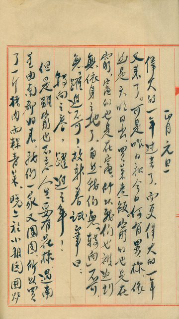 此係吳新榮寫於1948年1月1日之日記。當日是新的一年開始,吳新榮期許自己即便生活困苦,也要有所改變。難得的新年,吳新榮與家人在小雅園中吃團圓飯;一大早兒子們歡喜的燒香祭祖,再由吳南星帶著弟妹去郊外踏青並去祭拜亡故的毛雪。   回顧吳新榮1947年,可以說是波瀾萬丈、跌宕起伏的一年。1947年2月28日因為查緝私菸不慎而引發二二八事件,事件影響擴及全台,起初吳新榮曾與地方有志人士籌組台南縣二二八事件處理委員會並擔任總務組副組長,但也因此被當局通緝,其父親吳萱草亦曾因藏匿盜匪之罪名入獄,在被追捕期間吳新榮曾在鄉間躲避多日,最後為營救吳萱草出面自新卻反遭羈押,入獄百日後才出獄,出獄之後仍為了營救吳萱草之事四處奔走;之後又協助吳三連競選國大代表。   吳新榮在書寫日記時常會在年末自省當年度的所作所為,新的一年開始則會給自己訂下新的期許。經歷日本殖民統置多年,好不容易盼來回歸祖國的一天,但卻對於接收的亂象與貪官汙吏感到失望,自己與父親吳萱草又因二二八事件而經歷冤獄,加上戰後台灣通貨膨脹嚴重、社會秩序在本篇日記中感嘆即便新的一年到來,日子照樣要過,富者仍富、窮者仍窮,因此期許自己應該要「轉向」並且「躍進」,應有所改變的期許。