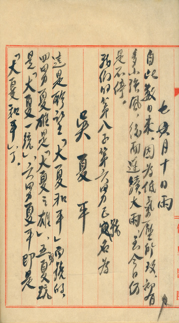 此係吳新榮寫於1948年7月10日之日記。吳新榮決定將剛出生的第8個孩子取名為吳夏平,有盼望「大夏和平」之意。另吳新榮的《自傳》目前已經完稿了,另寫一篇〈琑琅山房縱橫談〉。   吳新榮與兩任妻子共育有6子2女,其中吳南星、吳朱里、吳南河、吳南圖、吳亞姬是由第一任妻子毛雪所生,吳夏雄、吳夏統與吳夏平則由第二任妻子林榮樑所生。吳新榮對其子女的命名多含有特殊意義,如長子吳南星之名,係因吳新榮認為「南方的星光可照世界的和平」,而取名「南星」。而與林榮樑所生的3個兒子均以「夏」字命名,吳新榮曾在1944年6月22日的日記中提到為兒子吳夏雄命名的緣由,其中「夏」字有五個意義,包含在夏季出生、夏屬陽以及代指「華夏」之意等,本篇日記提到他的第8個孩子取名吳夏平則有期望「大夏和平」之意。吳新榮對於其子女的命名可謂用盡心思,時常會詢問友人的意見,並加入其對於子女或社會的期盼。