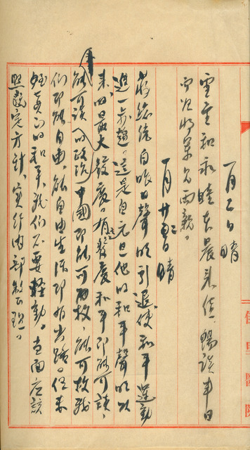 此係吳新榮寫於1949年1月22日之日記。蔣介石聲明引退。吳新榮認為此事有助和平、中國、自由、出路等延伸方面,但結果未定,應照既定方針,切勿輕動。   日記中所提及的聲明引退,係指蔣介石於1949年時,為與中共和談,被逼下野,由副總統李宗仁代理。蔣介石也因此事於總統府公告發布〈引退謀和書告〉,說明引退原因。然中共於10月1日宣布成立「中華人民共和國」,退至臺灣的蔣介石也於隔年自行宣布復職,此次引退之效果與意義可想而知。吳新榮在日記中雖然論及其延伸效應,但也未對和平抱以希望,依舊以既定計畫行事,實行於1月1日提及的內部整理工作。