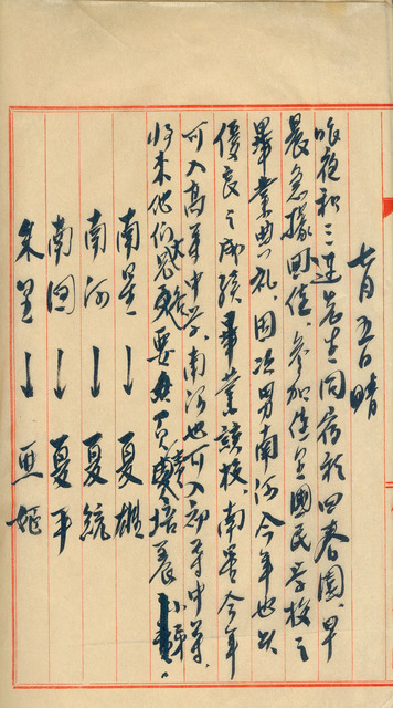 此係吳新榮寫於1949年7月5日之日記。吳新榮昨夜於吳三連同宿於四春園,因次男吳南河畢業,今早回佳里參加佳里國民學校畢業典禮。吳新榮在日記上記錄期望兄姊與培養的弟妹的組合。   吳新榮對兒女的教育情況十分關注,除購買文具或教科書外,亦努力使其子女向上而多次訓誡;於此同時,吳新榮也希望子女能繼承他在弟妹的教育與前程上的用心與努力。在本日日記中,除了吳新榮對其子女教育的重視外,我們也可以看到隨著孩子成長,吳新榮也逐漸轉換自己對部分子女的看法,將較為年長的兄姊也納入教育考量的一環之中。
