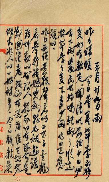 此為吳新榮寫於1951年3月29日的日記。昨日是黃振聲次子的婚禮,男女兩方的介紹人分別是吳新榮和鄭國湞;今日吳新榮的族親吳斛家中亦有喜事,吳新榮出席當伴郎。工作上,為了與衛生所抗衡,吳新榮想以完備取勝,故著手整理藥局、清點藥品。 吳新榮日記中所提到的衛生所應是「佳里衛生所」,其成立於1950年2月27日,如日記所述隸屬於鎮公所,並非獨立機構。當時的衛生所與社區居民關係較緊密,會主動關心民眾、提供服務,與私人藥局的業務有所重疊,或許這就是令吳新榮擔心的主因。衛生所是最基礎的鄉鎮公共衛生組織,1947年,因為第一任省衛生處處長嚴春輝在其任內致力於增設基層衛生機構,再加上1949年後,美援基金投入衛生所的籌建,使台灣各地的衛生所數量大增,從1945年的30間至1960年已增加到360間。1950年代,因為美援的輸入,對台灣的公共衛生政策、公立醫院建設、醫學專業人才培育......等等都產生了莫大的影響。日治時期,台灣的現代醫學多承繼於日本、德國的技術、系統,而至戰後由於政治權力的轉變,台灣的醫學也轉向以美國為學習的對象。