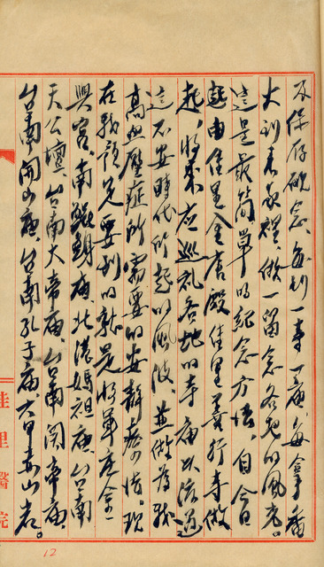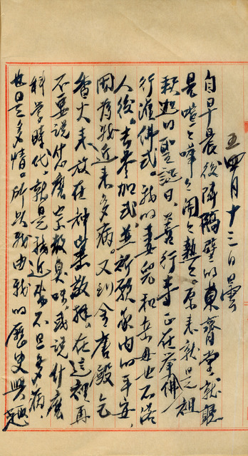 此為吳新榮寫於1951年5月13日的日記。今日為佛祖釋迦的誕辰日,因此一早鄰居的齋堂就很熱鬧,吳新榮一家也去到善行寺參加儀式,又到金唐殿祈求香火保平安。近來吳新榮多病又多情,對宗教不再嗤之以鼻,且因為高血壓需走路運動,他還計畫到各地寺廟巡禮,一方面也能滿足他對歷史、文物的興趣。 吳新榮本身沒有特別著迷於宗教,不過很喜歡宗教帶有的文化感、歷史感。在1938年時,正逢臺灣總督府推動皇民化運動,其中一項行為就是廢廟宇、改建神社,年輕時主張科學態度的吳新榮,卻始終對這項政策持反對看法,除了因為對政府宣傳政策的手段即態度不認同,也有對寺廟建築藝術的尊重。他雖然贊同除去舊習、破除迷信的觀點,但更重視廟宇背後所涵蓋的文化藝術價值,將寺廟視為一種文化資產不應被破壞,值得珍藏。從這件事中,可見他的人文關懷及對鄉土史的重視。