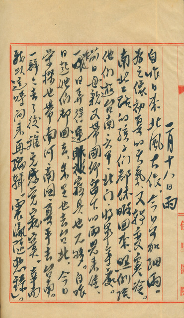 此係吳新榮寫於1952年2月18日之日記。吳新榮因孩子們休假回家,照例與他們遊覽遊臺南、六甲、北門、將軍等等地。前天母親張實帶吳國卿的兩個孩子前來,昨日回去;吳朱里回台北,今日林榮樑帶吳南河、吳南圖、吳夏平去臺南,吳新榮難免寂寞,故再編輯《震瀛隨想錄》。   《震瀛隨想錄》為吳新榮自費出版琑琅山房發行。其中受錄了〈亡妻記〉、〈琑琅山房隨筆集〉等詩文。1966年出版,並於1977年,因吳新榮逝世10週年而再版。為吳新榮為《震瀛全集》計畫的上集,然計畫於其後出版的《震瀛採訪錄》、《震瀛回憶錄》皆在其過世後方得以出版,是以《震瀛隨想錄》為生前唯一出版之自選集,其中受錄了〈亡妻記〉、〈琑琅山房隨筆集〉等詩文。