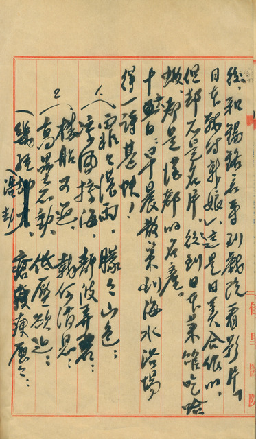 此係吳新榮寫於1952年6月20日之日記。本日日記記錄6月15日至6月18日之日記。吳新榮15日因吳雪金生產,清晨與吳敏誠陪伴母親張實前往基隆,途中欲訪張文環而未果。晚餐後與劉錫銘觀賞電影《日本戰時新娘》,結束後到日本菜館吃海鮮。16日早上至海水浴場,並寫一詩紀錄於日記上;上午與吳敏誠、劉錫銘到台北與吳榮輝、郭水潭、鄭國津等人用山東菜,後拜訪省文獻委會廖漢臣,市文獻委員會王詩琅。再與黃奇珍前往市政府與吳三連交談,晚餐後到臺灣戲院觀賞電影《巴黎春色》,與黃奇珍在徐先濤家夜談。17日中午後與吳敏誠前往雙園拜訪吳聯輝,後訪省漁會蔡天從未果;晚上與郭水潭、廖漢臣、王詩琅在東方印刷社交談到半夜。18日早上與吳敏誠到麻藥經理處領藥後南下回家。   吳新榮由於身兼數職,事務繁忙,或是受外在環境左右,時有無法當其書寫日記之情形,是以吳新榮會選擇某一日日記,記載先前一日或數日的簡略事務,而非本日經歷。如本日日記雖是於6月20日寫就,然日記中的內容,卻是同月15日至18日的概況。   吳新榮之父吳萱草為當地著名的詩人,曾在台南地區組織白鷗吟社、南瀛詩社等詩歌創作組織,創作、發表詩歌無數,有吳新榮為父親所編的《忘憂洞天詩集》傳世。吳新榮在父親的言傳身教,耳濡目染之下,也曾在各類報章雜誌上刊登中文詩歌;在日治時代結束後,吳新榮也沒有停下中文詩歌的創作,本日日記中在海水浴場所得之詩,便是一例。   觀賞電影是吳新榮日常生活中極為重要的娛樂活動。在日治時期,吳新榮便常與親人朋友一同前往戲院觀影,而在戰後,吳新榮無論是北上訪友,或是與台南諸友出遊,吳新榮都有觀影活動紀錄於日記中。吳新榮觀影不單只是為了交友需求,有時也會在日記中寫下對電影的看法與心得,如本篇日記6月15日所觀賞的《日本戰時新娘》,吳新榮便表示本片雖為日美合拍,但卻不達名片之水準。