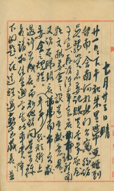 此係吳新榮寫於1952年7月23日之日記。本日日記記錄7月21日至7月23日之日記。21日吳朱里攜吳亞姬至北門公寓與吳南河、吳新榮會合,後委託吳錫熒購買李步家屋,向陳華宗貢獻台南縣文獻委員會設置之意見後,再拜訪石晹睢參考台南市文獻委員會規程。後與街上偶遇的許天成一同請求黃百祿調降佳里學生的通車費,並向蘇寶藏定下若有台南縣文獻委員會相關事宜的相助之約,最後回到許天成家休息。22日早餐後與許天成觀看省立一中考場,在長榮女子中學與郭孟揚雜談後弔長榮中學戴明福母喪,又前往感謝陳清曉日前的幫助。在國華戲院觀賞電影《羅馬屠殺記》後,與吳道隆請問張有忠李步家屋之事,後與黃奇珍在味祿軒晚餐時又遇舊友黃玉葉,最後回北門公寓關心吳南河之成績。23日受陳華宗好意乘嘉南大圳汽車回佳里,晚上作為郭漢琛夫婦的陪賓受高雄陳素雲夫婦招待。   吳新榮由於身兼數職,事務繁忙,或是受外在環境左右,時有無法當其書寫日記之情形,是以吳新榮會選擇某一日日記,記載先前一日或數日的簡略事務,而非本日經歷。如本日日記雖是於7月23日寫就,然日記中的內容,卻是同月21日至23日的概況。 吳新榮三日間前往台南主要為吳南河的考試與台南縣文獻委員會的設置準備工作。在同年的7月10日日記中,可以得知吳新榮對子女教育程度的了解與期待;而在本篇日記中,亦有吳新榮察看考試地點,看吳南河等人的成績的紀錄。在7月29日與8月6日日記中可以得知,吳南河雖然落榜台南一中,但長榮中學與省立二中皆有考中,而次女亞姬也獲得北門中學的備選資格。 1951年,台灣省文獻委員會通令台灣省各縣市成立文獻委員會,台南縣文獻委員會於1952年於新營成立,由同年11月13日日記可知,吳新榮自認以地方人士的身分在台南縣文獻委員會中擔任委員兼編纂組長一職,從此開啟他投入文獻考察與方志編纂的重要時期。在本篇日記中,吳新榮先向當時的議長,同時也是後來台南縣文獻委員會副主任委員的陳華宗貢獻關於文獻委員會設置的意見,並事先徵求蘇寶藏的協助意願,又找到當時已經由台南市史料編纂委員會改組為台南市文獻委員會中的委員石晹睢,參考了文獻委員會的規程。