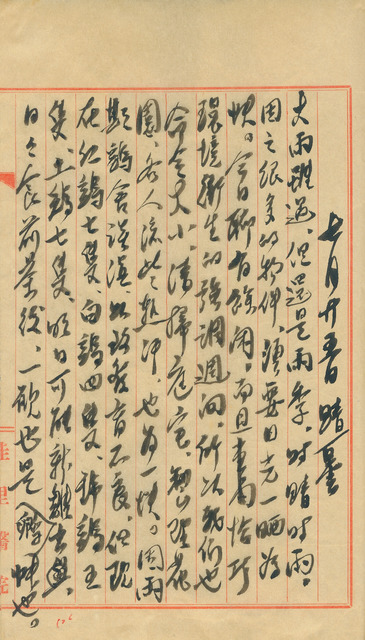 此係吳新榮寫於1952年7月25日之日記。吳新榮本日與家人打掃住宅庭院,並趁大雨剛過,曝曬物件。雞隻因雨季潮濕,發育不良,吳新榮於日記中紀錄各種雞隻數量,並期待雛雞孵化。   吳新榮飼養雞的時間跨度極長,在1937年便有養雞的記載,在1938年9月27日日記中,甚至有「人不飼養些動物就不像是人!」的感嘆;在戰爭時期,吳新榮為符合「住宅空地利用」的口號,也將鴿舍改為更具有生產性的雞舍。而吳新榮在1937至1966年間,在能填補閒暇與自給自足的想法下,縱然中途多次歷經空襲及雞瘟等阻礙,仍然持續養雞。在本日日記中,吳新榮食前茶後,關心雞隻狀況,並引以為快。說明養雞對於吳新榮而言,除了現實層面的考量外,一定程度上也有心理層面的快慰。