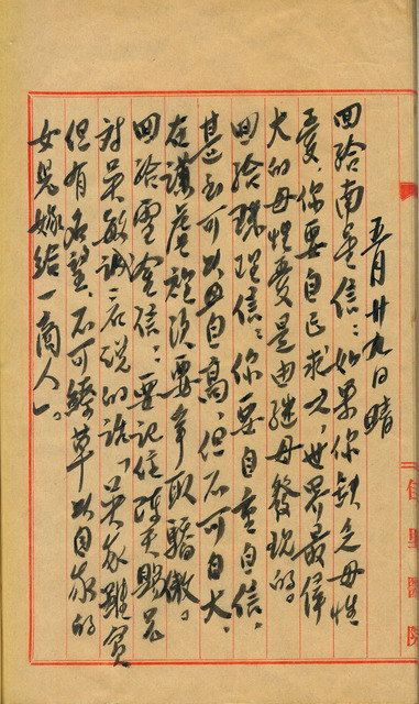 此為吳新榮記載於1955年5月29日日記,本日回信給連溫卿、賴建銘與子女們,回信兒子吳南星內容關於母愛,女兒吳朱里則是關於品格,女兒吳雪金關於自重、慎重思考婚姻等,而在連溫卿的回信中提到台南縣文獻委員會之工作,最後回信賴建銘,提及預算以及封面問題。下午石晹睢、莊松林來訪,一同前往北頭洋,一見到新建好的阿日祖厝,內心甚是驚喜。後訪徐清吉,四人一同前往南勢與三五甲。   本日吳新榮回信給子女與聯絡工作項目,子女的回信中大多都是勉勵與期許,而工作則是台南文獻委員會,在1952年吳新榮接下台南縣文獻委員會工作,曾任委員兼編纂組組長。隔年3月主編之《南瀛文獻》創刊。1954年10月受李鹿案牽連被捕入獄,此事件為台南市工委案,李鹿因加入共產黨等組織遭到政府追查,1952年吳新榮曾與李鹿接觸過,所以在1954年被政府找上門,並且被捕入獄,扣押約四個月後出獄,在近幾日恢復職位,信件中可得知吳新榮對於此工作非常重視。