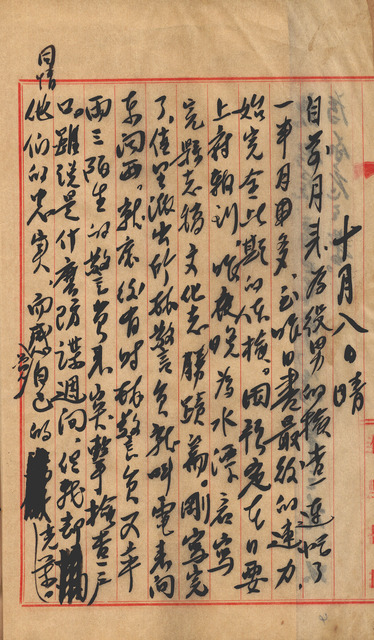 此為吳新榮記載於1955年10月8日日記,吳新榮自開始幫忙役男的身體檢查,至此終於告一段落,本日將前往政府提交報告。而昨日編寫縣志中的〈勝蹟篇〉後警察前電詢問,後而登門造訪,吳新榮則問心無愧的接受他們的詢問。  本日日記提到縣志的編寫與警察來電詢問一事,1954年10月吳新榮因受李鹿案牽連,而被逮捕入獄,隨之亦失去文獻會的工作,1955年2月,歷時4個月餘牢獄之災的吳新榮終於出獄,後又經2個月餘的文獻會復職程序後,終於於1955年4月11日正式復職於臺南縣文獻會,並於5月24日得到省方批准「復職手續」的消息,且拿到了「自首證」,整起事件的奔波乃告一段落,復職後的吳新榮乃潛心專注於縣志的編纂、史料的調查與整理;然而,在該時代下的入獄者雖經獲釋,但政府仍對其的監督與掌控仍嚴,即便當時吳新榮已出獄半年餘,仍接到員警藉「防諜週」為由得來電調查,以及突襲的戶口檢查,對此其以:「我却同情他們的忠實,而感覺自己的光榮。」表達出對此事的無奈。