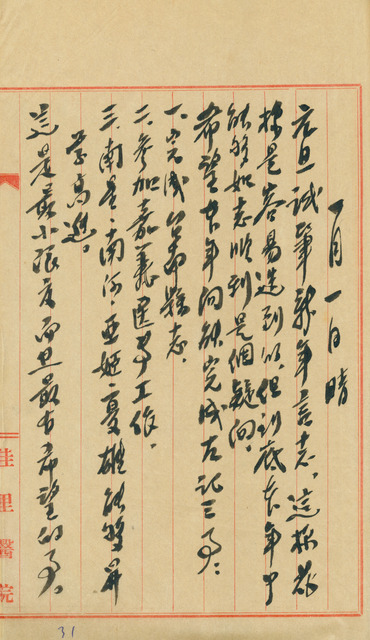 此係吳新榮寫於1956年1月1日之日記。吳新榮記下當(1956)年想達成的三個目標;另提到自第二次世界大戰以來已不寄送賀年卡,一方面認為是繁文縟節,另一方面是打算節省開銷,但自年末起仍收到許多賀年卡,因此特別記下名單;最後則提到今年最開心的是養雞成績不俗。   吳新榮自1950年代起開始投入台南文史調查工作,1952年台南縣文獻委員會成立後受聘為委員兼編纂組組長,開始著手編寫《臺南縣志》;1953年《南瀛文獻》創刊,吳新榮出任主編一職,持續投入台南的文史調查工作當中,並開啟調查西拉雅族文化之先河,至1967年臨終前一共完成《臺南縣志》10卷共13冊及《南瀛文獻》數冊,為臺南文史調查奠定深厚基礎。   吳新榮自1952年受聘為台南縣文獻委員會委員兼編纂組組長後即著手編著《臺南縣志》,至1960年完成,該書一編有10卷共13冊,包含自然、人民、政制、經濟、教育、文化、人物及雜誌等。
