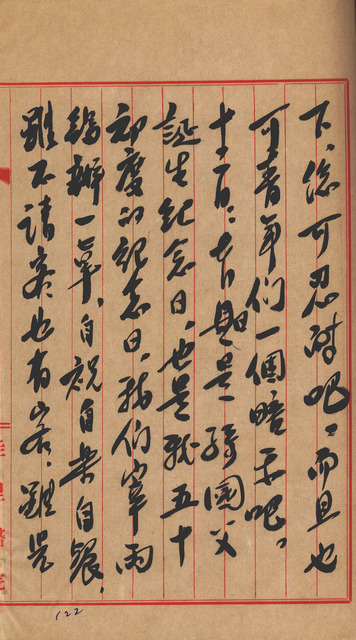 此係吳新榮寫於1956年11月12日之日記。當日是吳新榮生日,同是也是孫中山的生日(即國父誕辰紀念日),家中特地殺兩隻雞辦一桌菜慶祝。兒子吳南星下午則出發回軍營。   吳新榮在日本留學期間,曾在神戶聽過孫中山演講「大亞細亞主義」,並因此深受感動,加上當時台灣知識份子對於日本雖然在表面上強調日台平等,但同化政策的推行更讓台灣人備感歧視,因此許多知識青年聽聞中國革命成功後開始激起民族意識,並崇敬孫中山的革命精神,吳新榮亦是其一。據其子吳南星回憶,吳新榮生日恰好與孫中山同天加上同為學醫之人,吳新榮十分崇拜孫中山,甚至買了一張孫中山的相片掛在書桌前的牆壁上勉勵自己。吳新榮曾在1945年6、7月間重拾孫中山所著之《中山全集》閱讀,並在日記中寫下其對書中內容的心得感想,且讚譽有加。