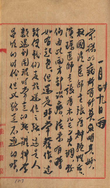 此係吳新榮寫於1957年1月29日日記。因繼室林榮樑久病未癒,所以吳新榮嘗試求神問卜與求助漢醫;參加臺灣省臺南縣政府衛生院長許培元送別會;前往大全成戲院看電影;交季刊稿費予石暘睢等人。   日記中提及的「季刊」即指《南瀛文獻》。此刊物由臺南縣文獻委員會發行,為編纂《臺南縣志》而創刊於1953年,主要搜羅臺南縣歷史地理、風俗生活等有關史料或論著。創刊之初以季刊形式發行,之後又陸續變更為半年刊,以及「年刊」性質的合刊。日後因2010年臺南縣、市行政區合併,與臺南市《臺南文化》一同合併為《臺南文獻》。   吳新榮此時正擔任臺南縣文獻委員會委員兼編纂組組長,因此於其日記中可見有關《南瀛文獻》記述,如本日所提的繳交稿費。